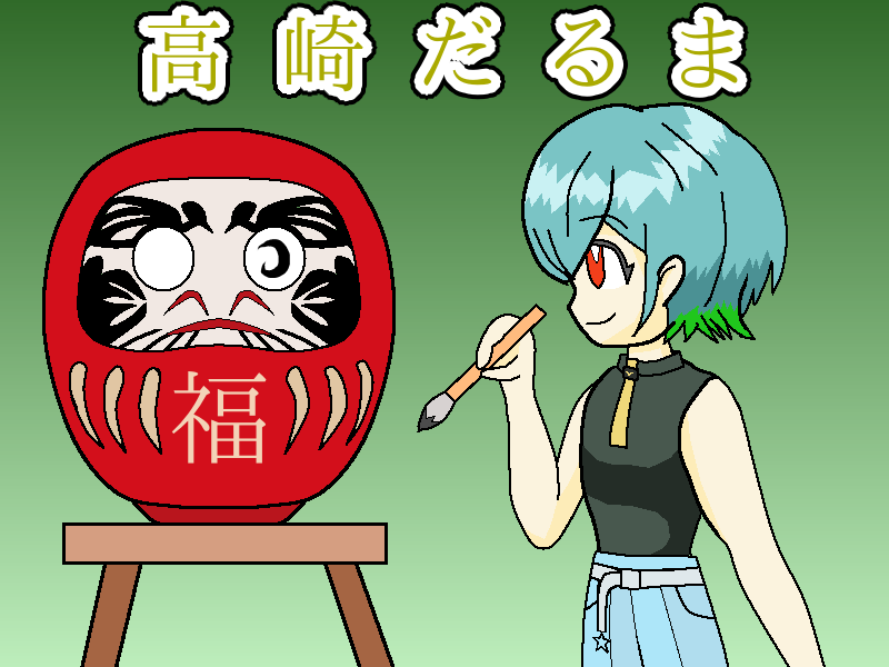 高崎だるまは、眉がツル、ヒゲがカメになっています。