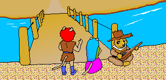 橋の前でかわうその詩人が柄付の琴を弾いていました。