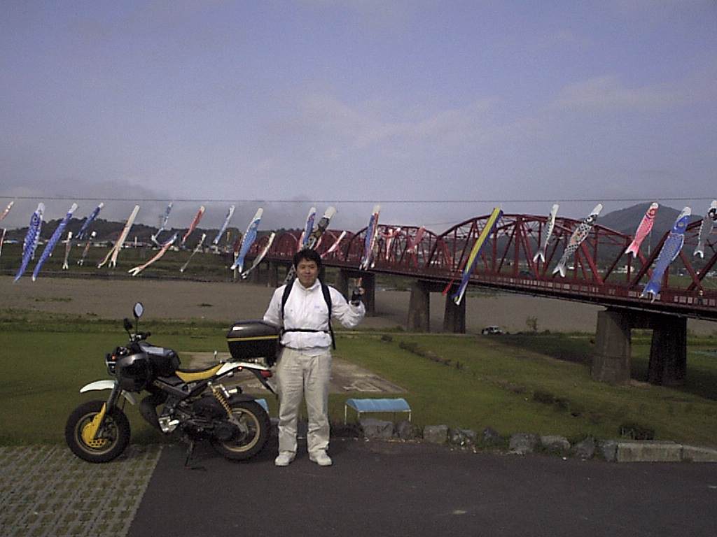 上の写真は四万十川橋です。なぜか大量のこいのぼりがかかってました。